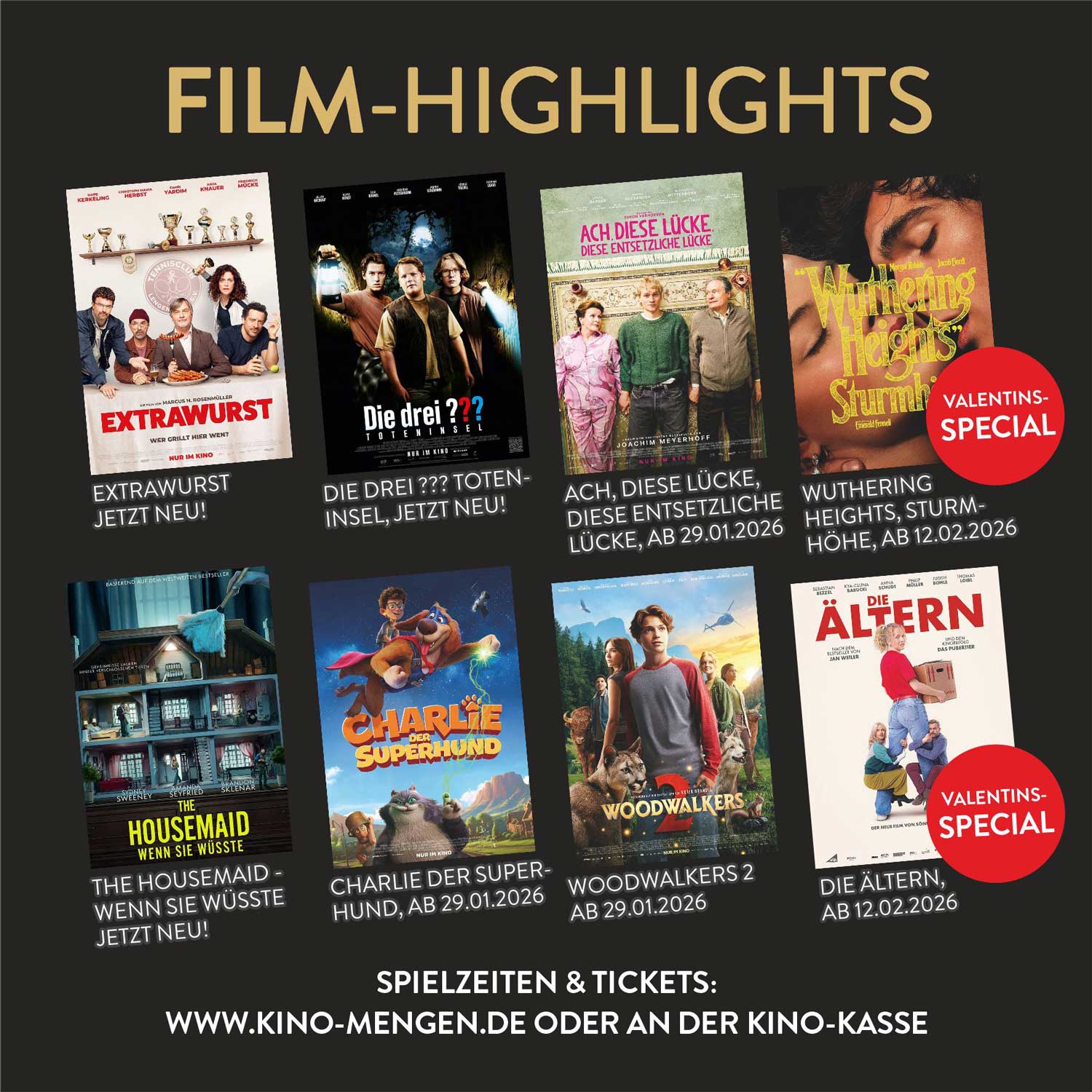 Herzlich willkommen im GLORIA.KINO-CENTER MENGEN – deinem ganz persönlichen Kino- und Filmtheater! Hier erlebst du Kino auf eine ganz besondere Weise. Bei uns steht Individualität und ein abwechslungsreiches Filmprogramm im Vordergrund, das für jeden Geschmack und jedes Alter etwas bereithält. Ob Kinder, Familien, Jugendliche oder Erwachsene – wir bieten eine breite Palette an Filmen, die von spannenden Kinderabenteuern über angesagte Jugendfilme bis hin zu berührenden Dramen, fesselnden Thrillern und emotionsgeladenen Blockbustern reicht. Aber das ist noch längst nicht alles: Kunst und Kultur haben bei uns einen festen Platz und unser Programm umfasst auch pädagogisch anspruchsvolle Filme, die zum Nachdenken anregen und inspirieren.